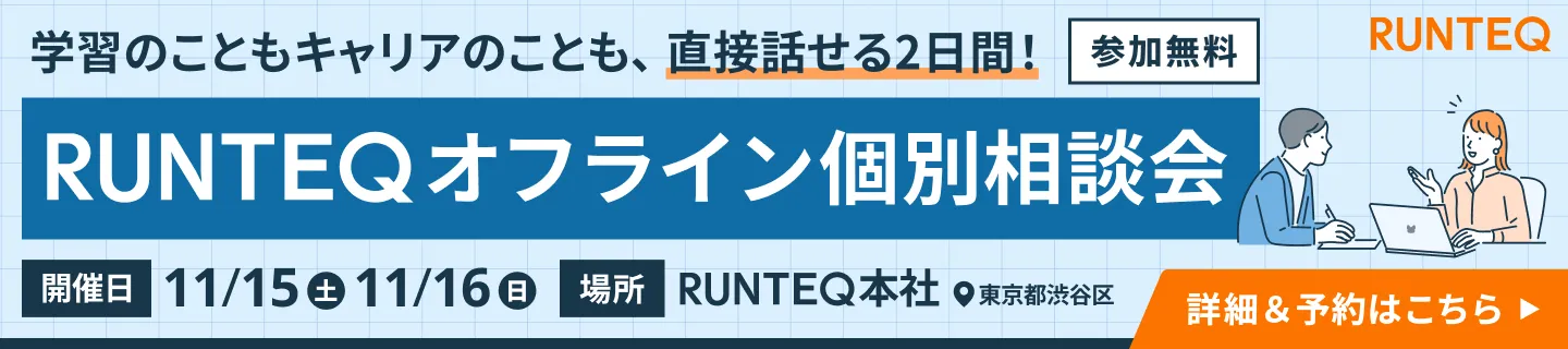 卒業生インタビュー 金融機関の営業職からWebエンジニアへ転職!後悔しない企業選びと内定獲得の秘訣とは? 2025年4月17日 ai_saito https://runteq.jp/blog/wp-content/uploads/2022/03/RUNTEQ_BLOG_logo.png 未経験からWebエンジニアへ RUNTEQ BLOG