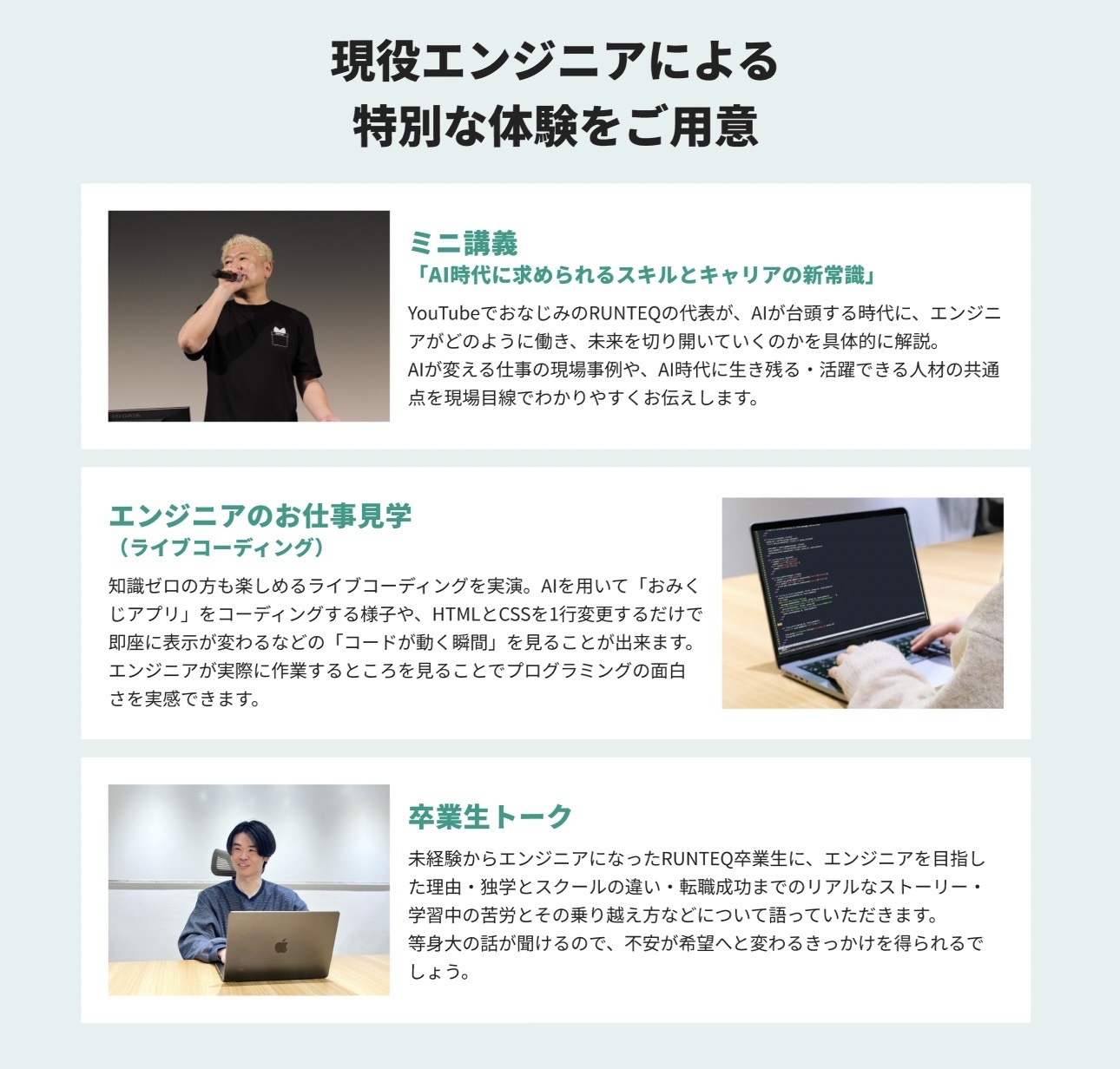 今後もRUNTEQでは、最新のエンジニア現場でのトレンドを取り入れ、皆様が即戦力エンジニアとして羽ばたける環境を提供してまいります。