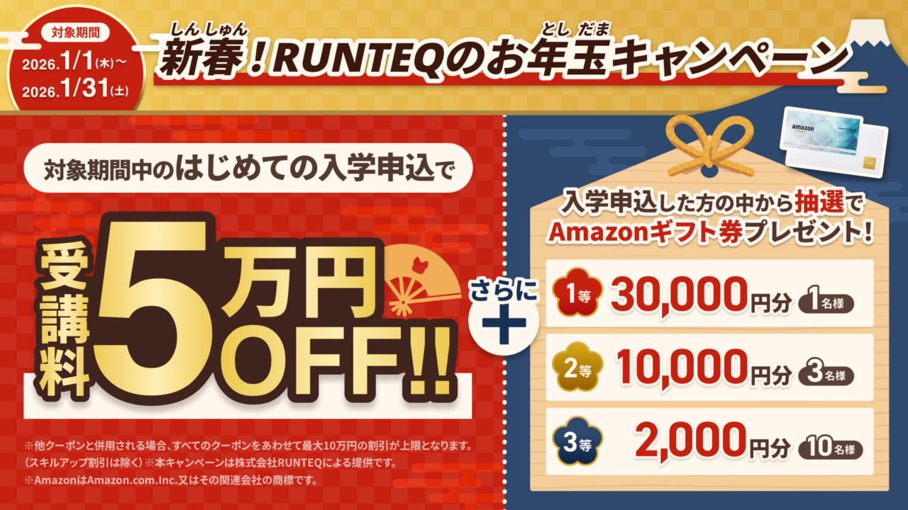 【受講料5万円オフ】新春!RUNTEQのお年玉キャンペーンが開催決定!