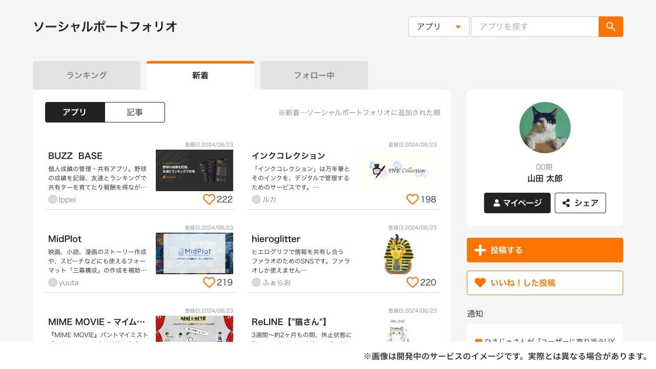 これにより、受講生同士がフォローし合い、学んだことを共有しながら、より魅力的なポートフォリオを簡単に作成・共有できるようになります。