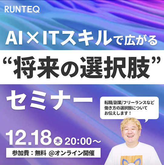RUNTEQ、2025年12月より新コース「Python×AIコース」を提供開始。RUNTEQはAI時代に即したスキルを身につけられる 新コース「Python×AIコース」 を開講することになりました!「これからのキャリアにAIを活かしたい」「Webエンジニアとして最新技術を学びたい」 そんな方にぴったりのコースです。...