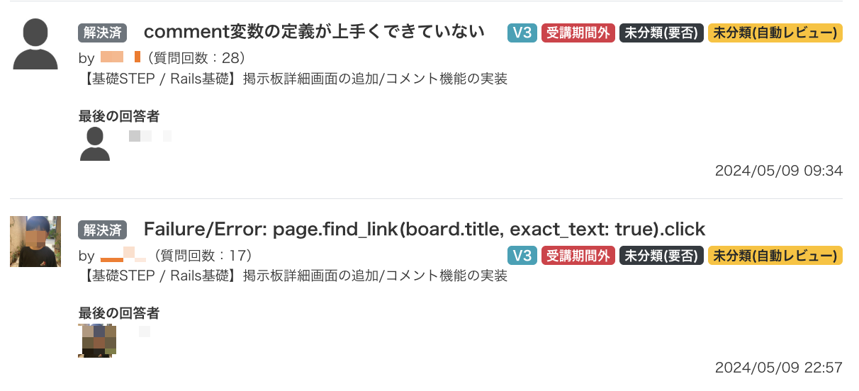 ・課題別に過去の質問/回答が閲覧可能
